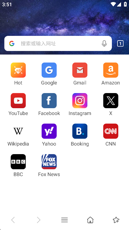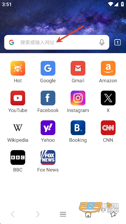 打開app,用戶們可以直接在搜索欄搜索自己需要的資源或者喜歡瀏覽的網站網址