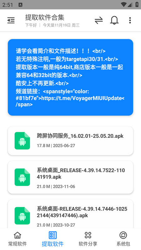 2、可提取小米手機(jī)相關(guān)應(yīng)用安裝包,涵蓋常規(guī)軟件、系統(tǒng)包等類型。