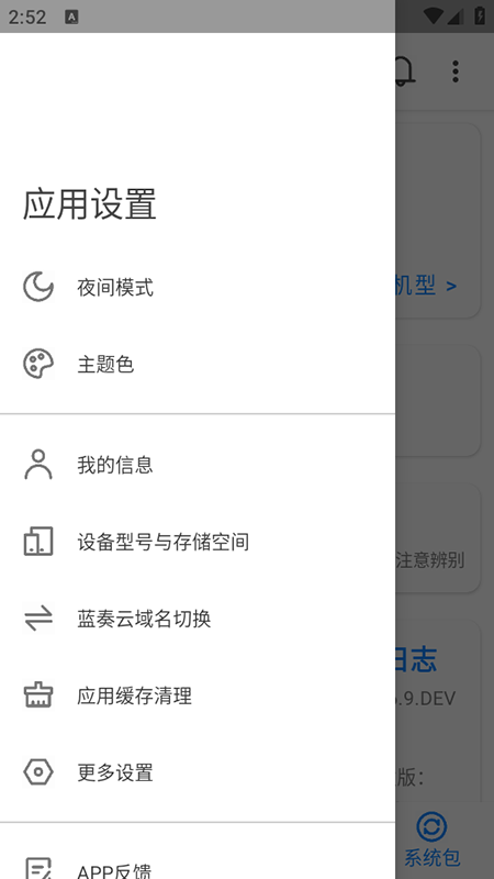 3、支持夜間模式開(kāi)啟、藍(lán)奏云域名切換、應(yīng)用緩存清理等功能。