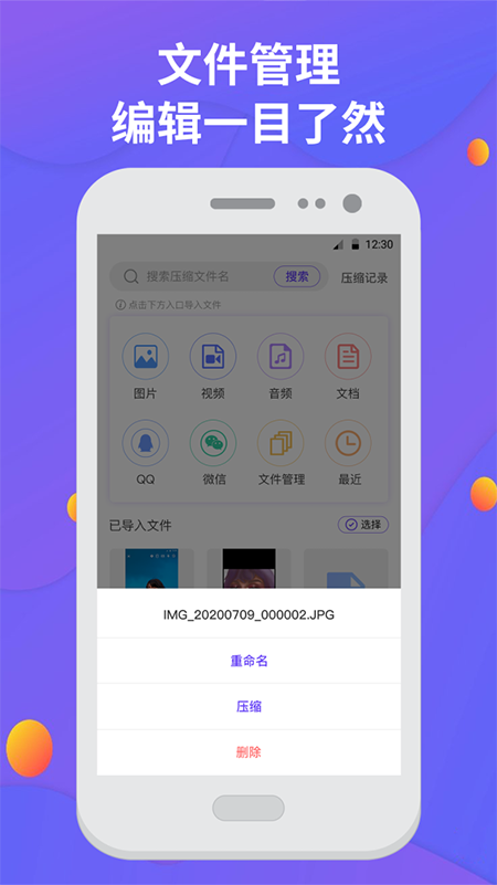 5、內(nèi)置文件管理器功能,可對(duì)手機(jī)中的文檔、圖片、視頻進(jìn)行分類(lèi)整理,支持文件復(fù)制、移動(dòng)、刪除、重命名操作。