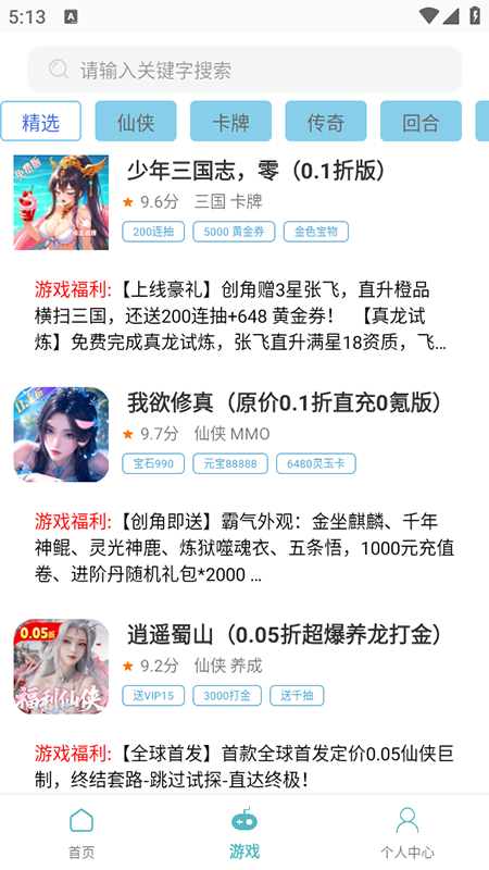 1、多款游戲低至0.05折-0.1折,大幅降低玩家消費壓力。