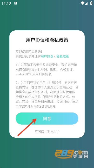 打開(kāi)app,用戶們直接點(diǎn)擊“同意”,同意軟件協(xié)議政策