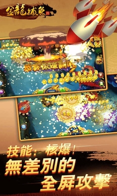 金龍捕魚v1.06《金龍捕魚》是一款休閑類中國風的捕魚游戲,游戲在經典的捕魚游戲基礎上,增添的新的玩法,好玩有趣,精美的游戲畫質和清晰的音質,喜歡的玩家快來下載吧。